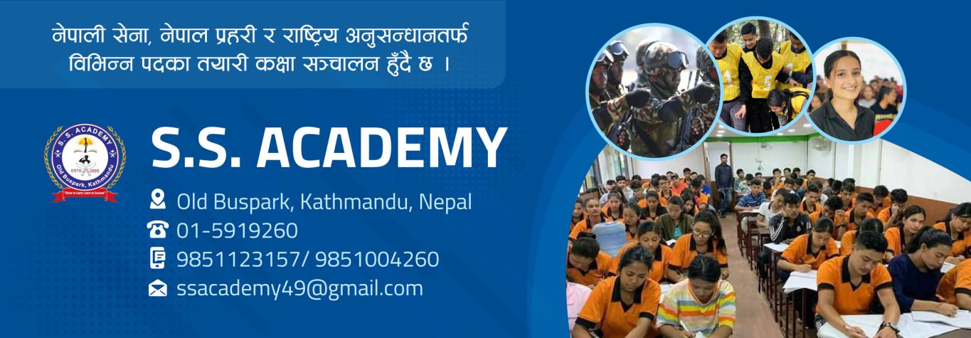 Welcome to S.S. Academy, Nepal's First and Largest Institute for Cadet Preparation! We are thrilled to announce that admissions are now open for Officer Cadet Preparation, but hurry, as there are limited seats available! To secure your seat, please contact us at your earliest convenience. At S.S. Academy, we are dedicated to providing comprehensive preparation for aspiring officer cadets.